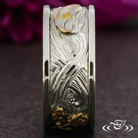 Hand engraving is the pinnacle of the jeweler’s craft, displaying fine artistry in crisp detail. It takes perfectly honed, hardened steel tools, a steady hand and years of dedicated practice to get it right. Green Lake's skilled engravers maintain world class craftsmanship within the increasingly rare art form, of which this piece provides a stunning example.