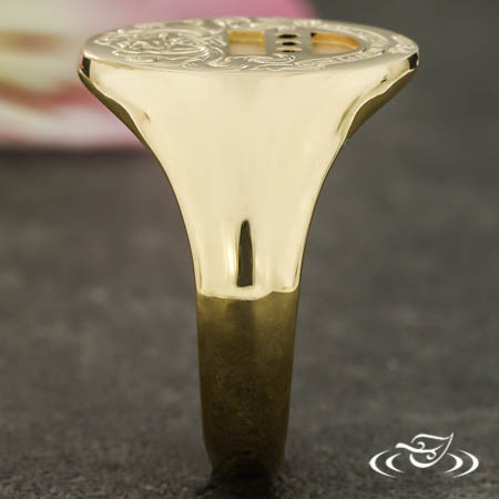 Hand engraving is the pinnacle of the jeweler’s craft, displaying fine artistry in crisp detail. It takes perfectly honed, hardened steel tools, a steady hand and years of dedicated practice to get it right. Green Lake's skilled engravers maintain world class craftsmanship within the increasingly rare art form, of which this piece provides a stunning example.