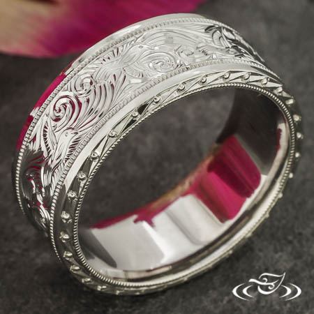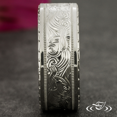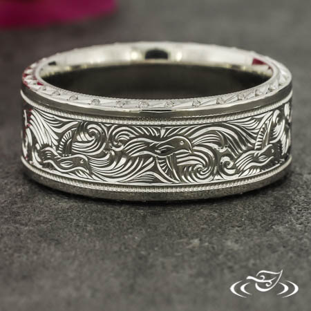 Custom Scroll and Hummingbird Engraved Band