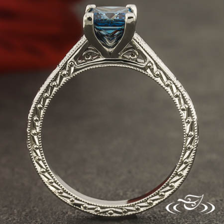 The red sprue functions as the channel for the molten platinum to access and fill the resin, creating the cast ring.