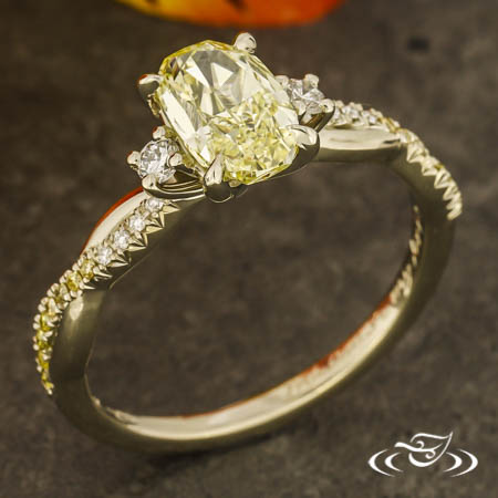 Mac uses a graver to bright cut the sides of each set before French-setting the accent diamonds.