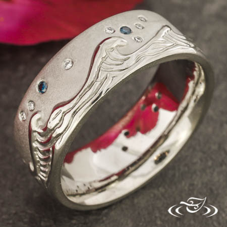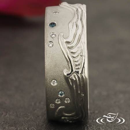Einar first drills pilot holes before placing the diamonds into their respective settings with great care. To ensure their enduring durability, a small amount of metal is gently folded over the edges of each stone to secure them in place for a lifetime of wear. After setting the stones, he meticulously smooths the metal to ensure there are no sharp edges.
