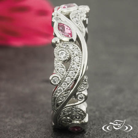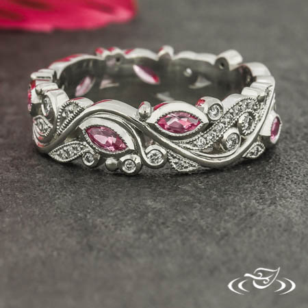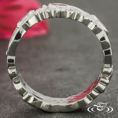 The milgrain detail, varying stones and setting styles, and high polish finish complete the design, resulting in a truly remarkable and captivating piece of jewelry.