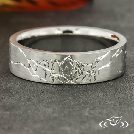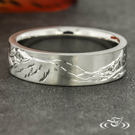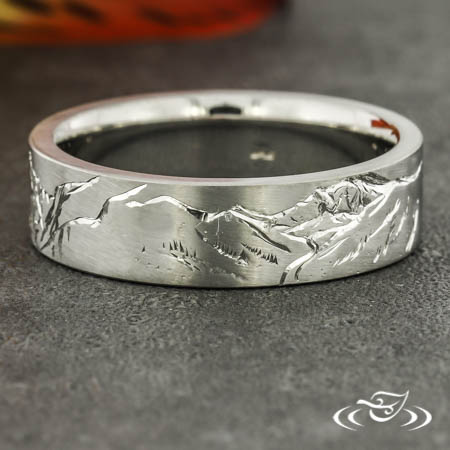 CUSTOM ENGRAVED MOUNTAIN RANGE WEDDING BAND