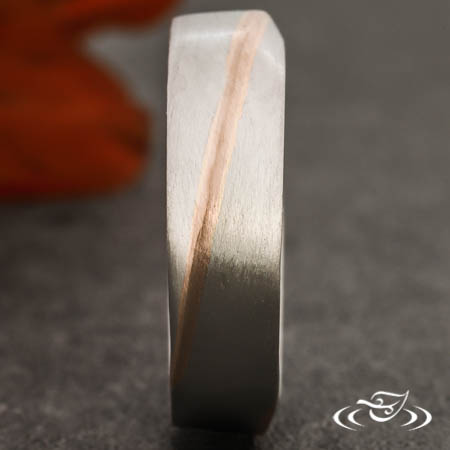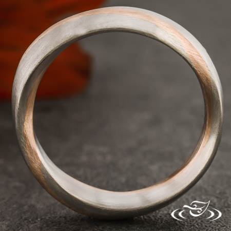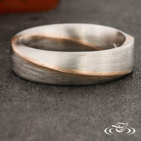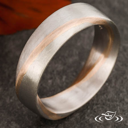 Platinum Mobius style band with 14k rose gold inlay, matte finish.