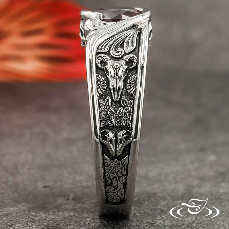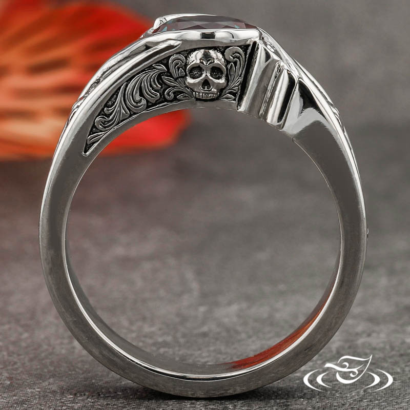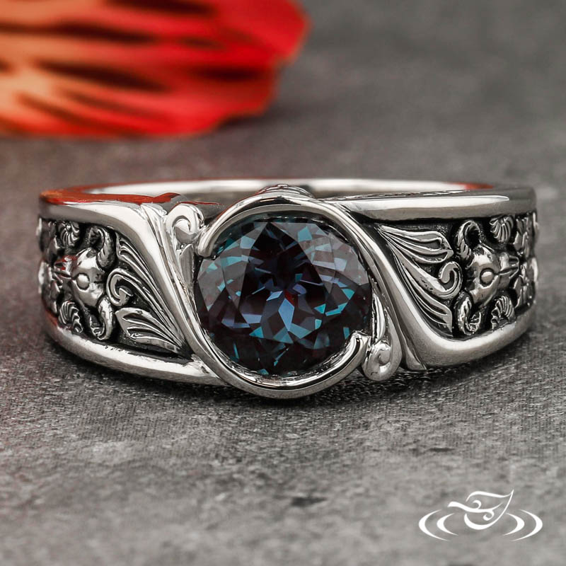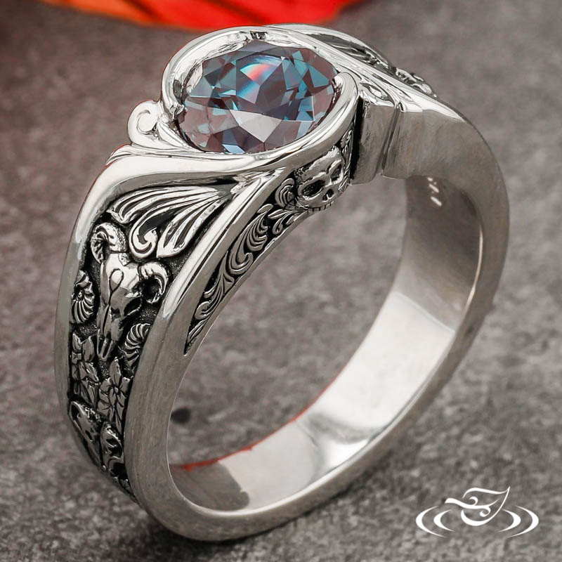 WRAP SET ALEXANDRITE RING WITH SKULLS, FLOWERS, AND SCROLLS