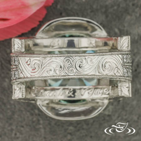 Hand engraving is the pinnacle of the jeweler’s craft, displaying fine artistry in crisp detail. It takes perfectly honed, hardened steel tools, a steady hand and years of dedicated practice to get it right. Green Lake's skilled engravers maintain world class craftsmanship within the increasingly rare art form, of which this piece provides a stunning example.