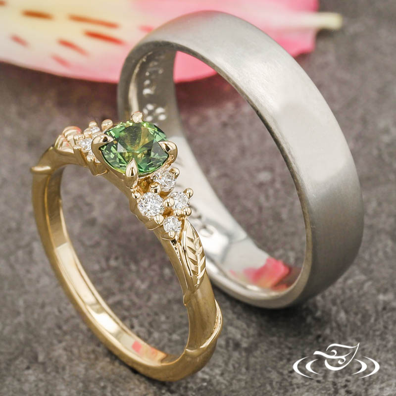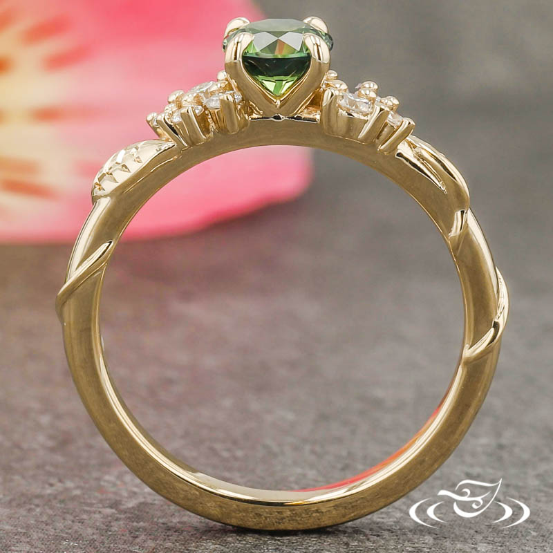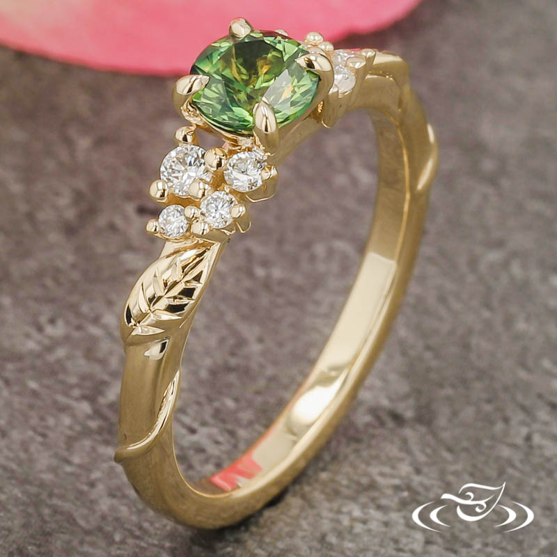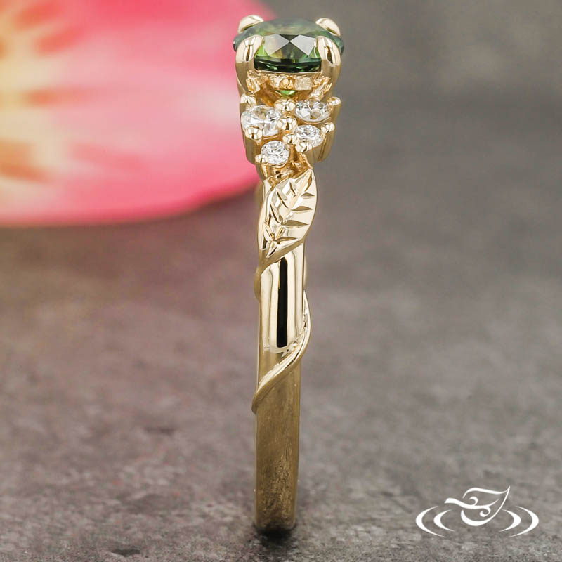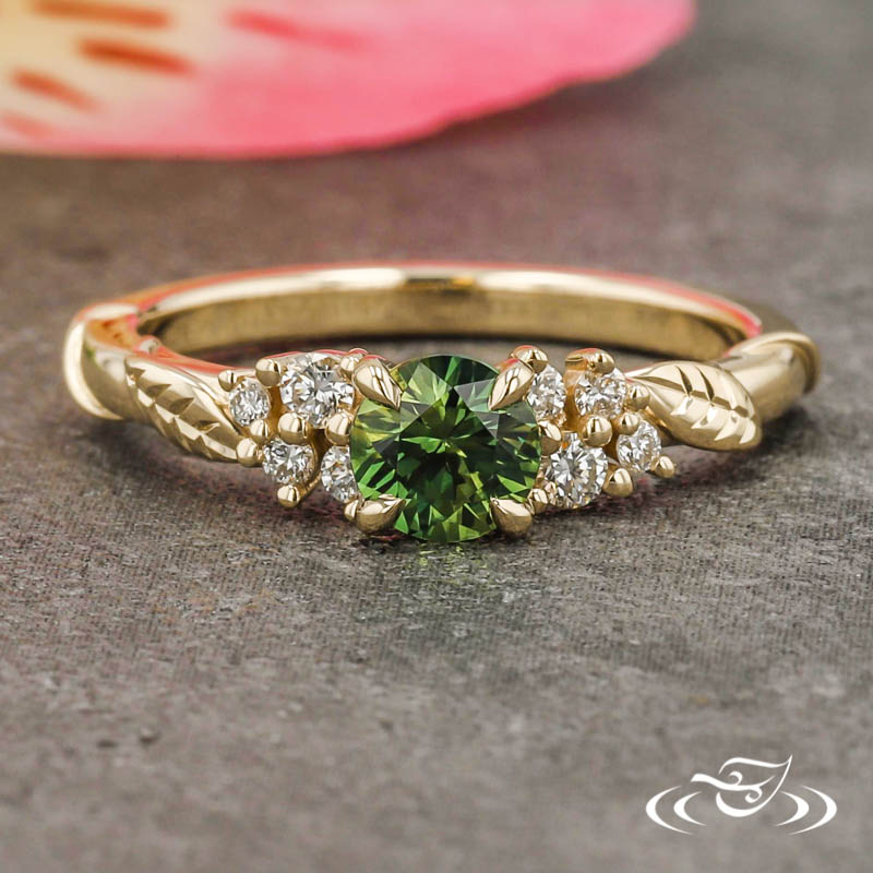 TRISHA'S GREEN SAPPHIRE DIAMOND ACCENT LEAF AND VINE ENGAGEMENT RING