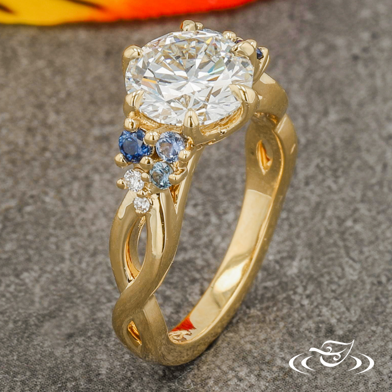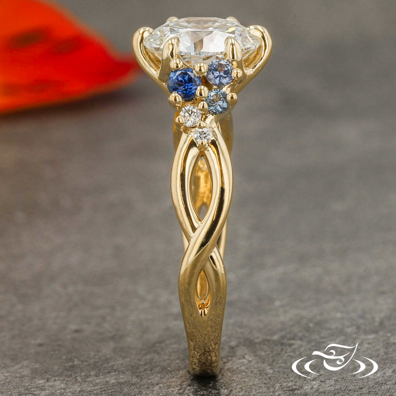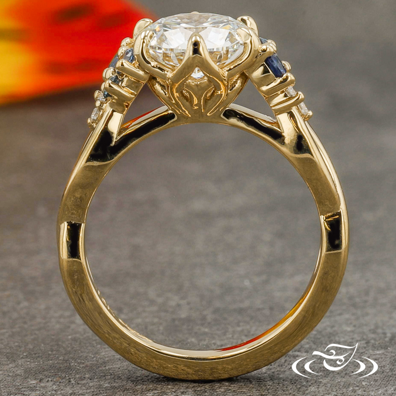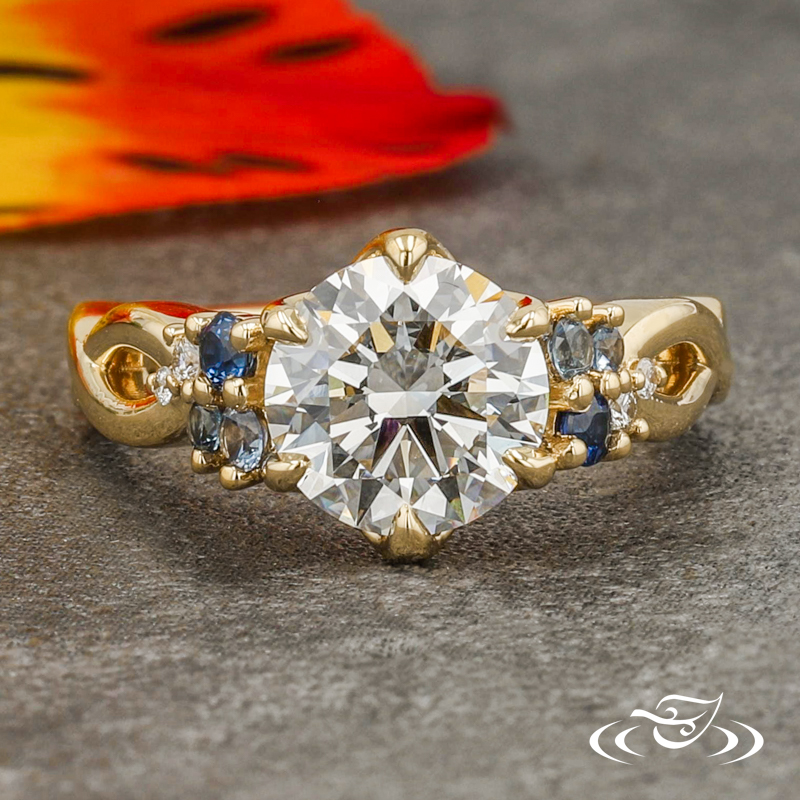 SOPHIA'S FLOWER PETAL INSPIRED ENGAGEMENT RING WITH SAPPHIRE ACCENTS