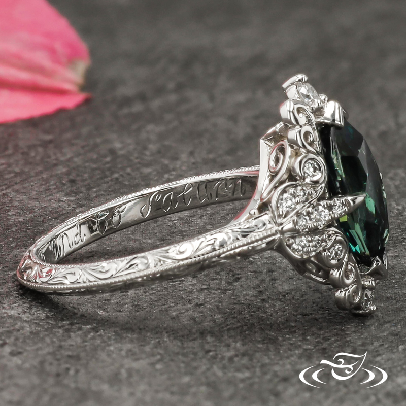 Hand engraving is the pinnacle of the jeweler’s craft, displaying fine artistry in crisp detail. It takes perfectly honed, hardened steel tools, a steady hand and years of dedicated practice to get it right. Green Lake's skilled engravers maintain world class craftsmanship within the increasingly rare art form, of which this piece provides a stunning example.