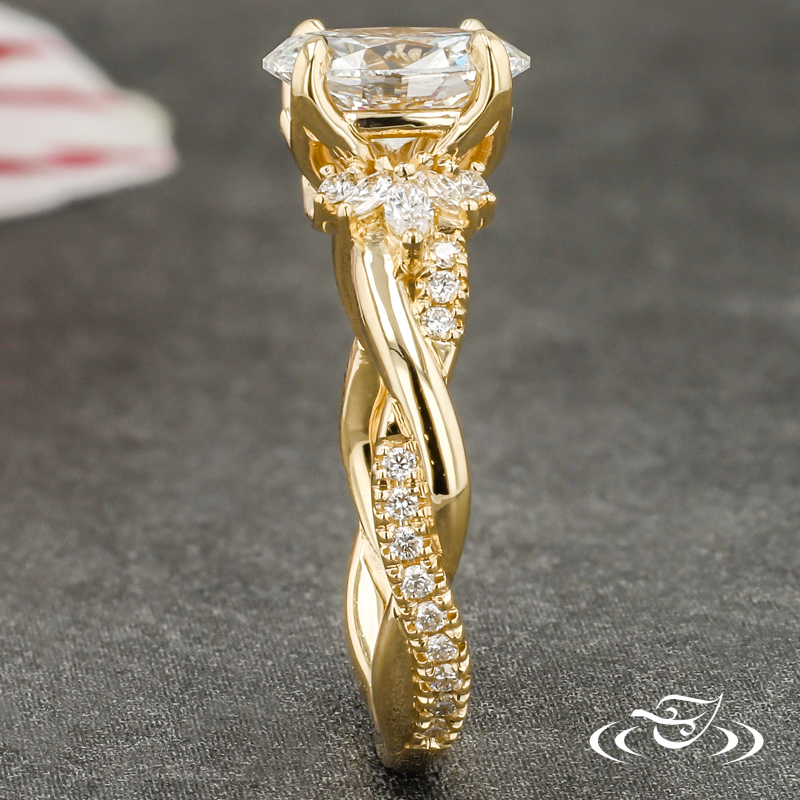 BEATRIZ'S 18K YELLOW GOLD MARQUISE CLUSTER AND TWISTING MELEE SHANK ENGAGEMENT RING