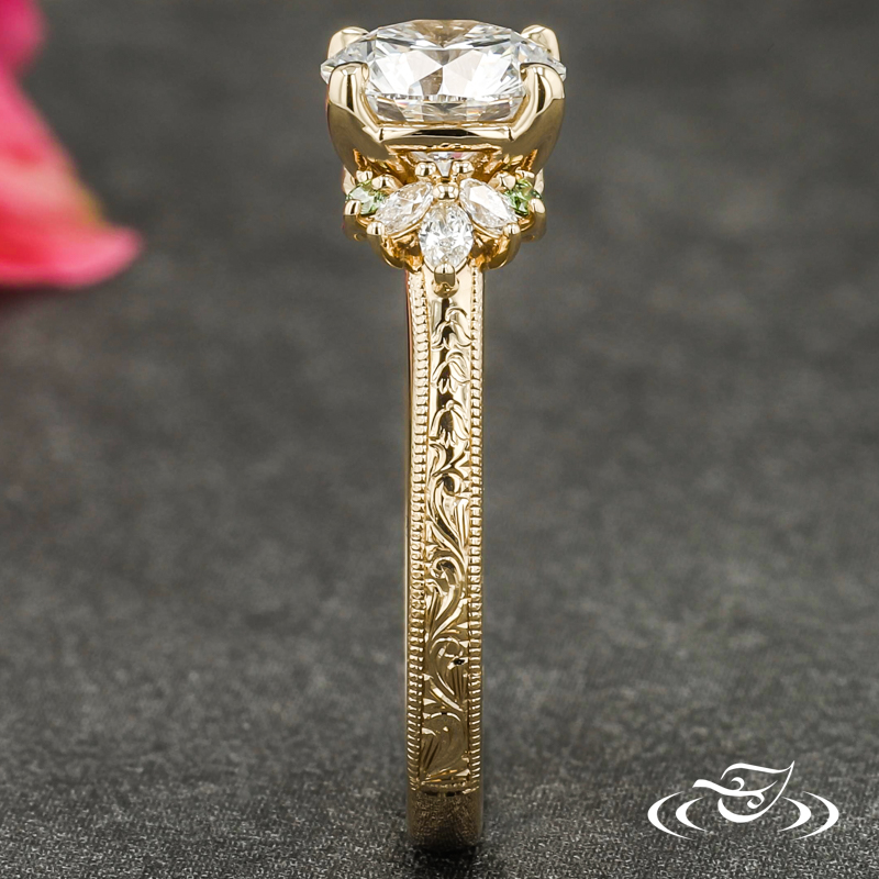 TYLER AND SHELBY'S ENGRAVED LILY OF THE VALLEY/SCROLLWORK ENGAGEMENT RING