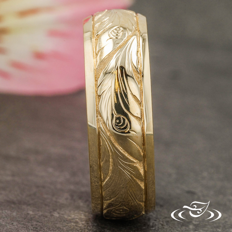 Hand engraving is the pinnacle of the jeweler’s craft, displaying fine artistry in crisp detail. It takes perfectly honed, hardened steel tools, a steady hand and years of dedicated practice to get it right. Green Lake's skilled engravers maintain world class craftsmanship within the increasingly rare art form, of which this piece provides a stunning example.