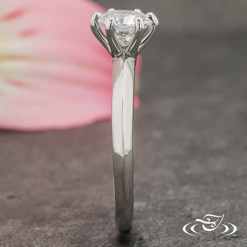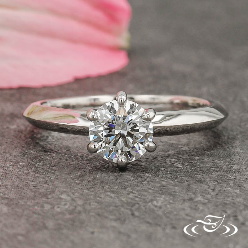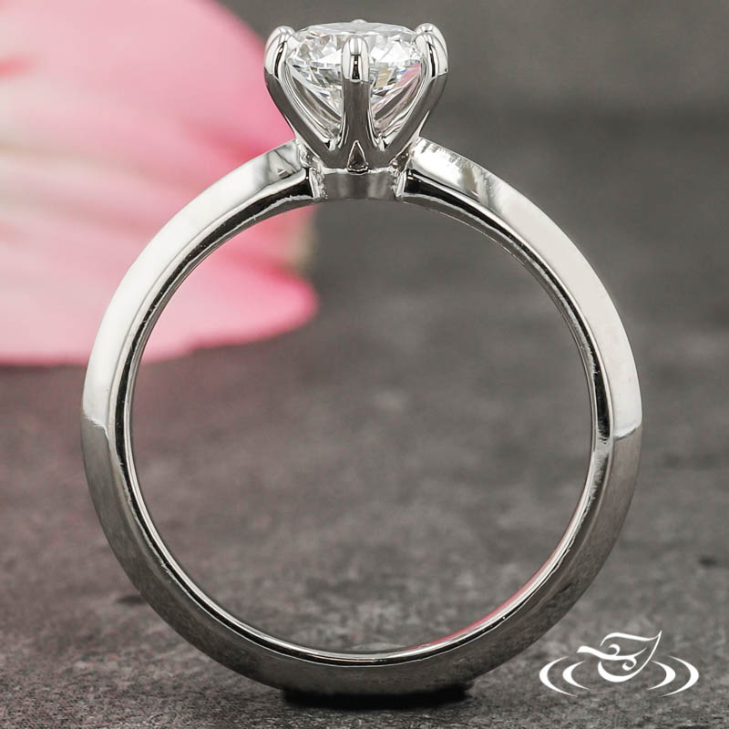 Custom 950 platinum ring holding a 6-prong set GLJW provided round lab diamond center stone. This ring also has a knife edge shank and a high polish finish.