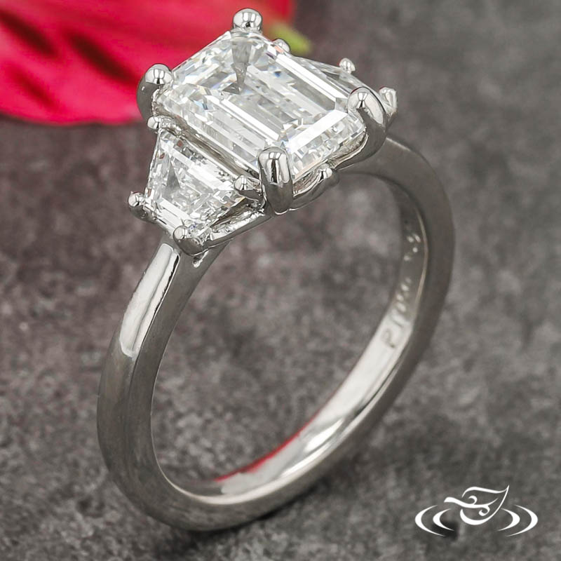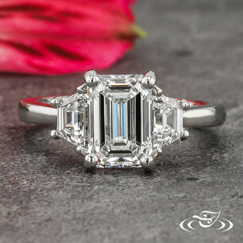 JESSICA'S THREE-STONE EMERALD-CUT ENGAGEMENT RING