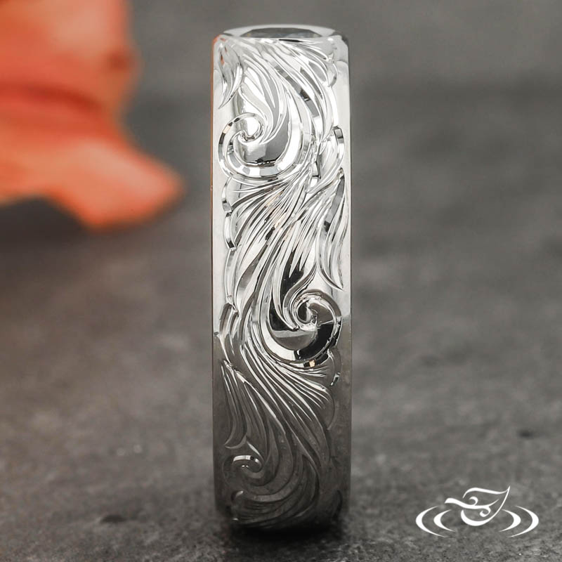 Hand engraving is the pinnacle of the jeweler’s craft, displaying fine artistry in crisp detail. It takes perfectly honed, hardened steel tools, a steady hand and years of dedicated practice to get it right. Green Lake's skilled engravers maintain world class craftsmanship within the increasingly rare art form, of which this piece provides a stunning example.
