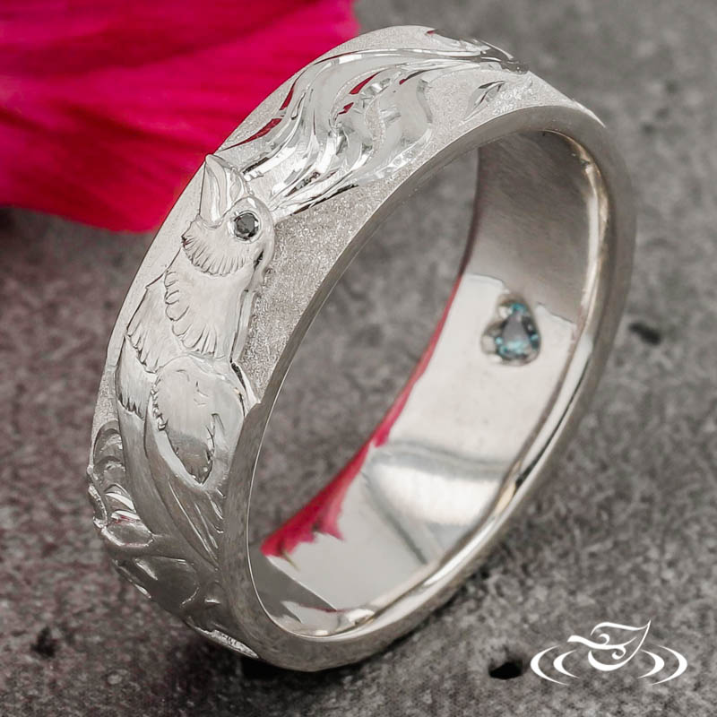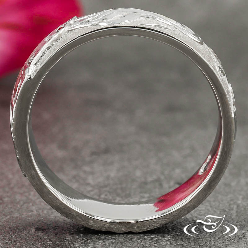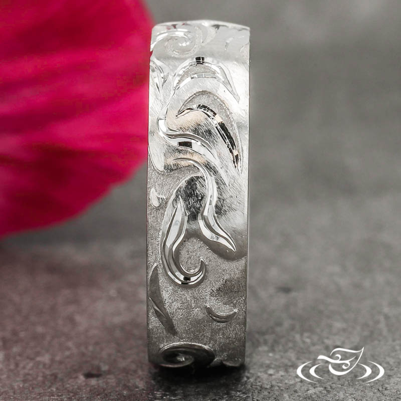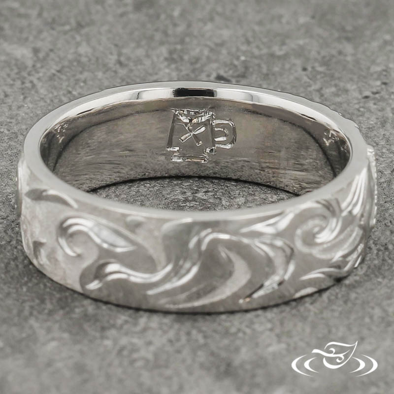 Hand engraving is the pinnacle of the jeweler’s craft, displaying fine artistry in crisp detail. It takes perfectly honed, hardened steel tools, a steady hand and years of dedicated practice to get it right. Green Lake's skilled engravers maintain world class craftsmanship within the increasingly rare art form, of which this piece provides a stunning example.