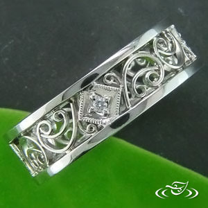 Filigree is the thinnest of wire extruded from precious noble metal, and fashioned by hand into delicate curls to add intricate details to open spaces. The ability to form fine wire like this is almost a lost art. In a world of mass produced jewelry, it’s a skill that takes years to master and it imbues pieces with a beauty that’s nearly impossible to match.