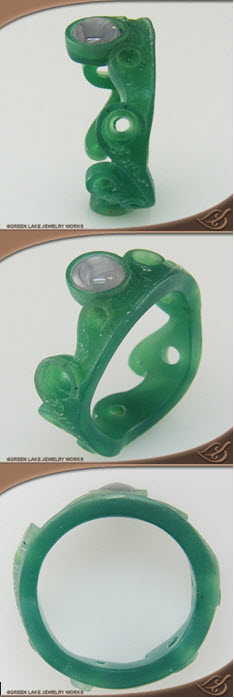The wax model with the stone propped in starts to really give a sense of scale and texture of this design.