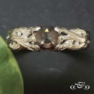 ORGANIC TREE BRANCH STYLE MOUNTING AND RUSTIC CHAMPAGNE DIAMOND