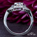 Platinum antique inspired ring with (2) baguette diamonds and (14) round bead set diamonds totaling .25ctw. Center set with .93ct Old European cut J-VVS2 with GIA certificate. Finger size 6
