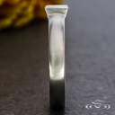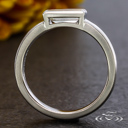 Platinum contemporary bezel set diamond ring with .84ct I-VS1 baguette diamond. Brushed finish, size 6.5
