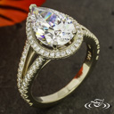 14kt white gold split shank halo to fit pear shaped center totaling .29ctw accents. Add a the diamond or gemstone of your choice for center. Fits ~12x8mm.