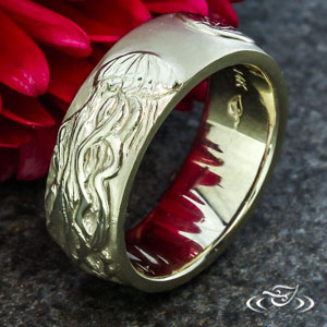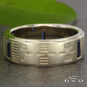 Aeronautical maps & guages are the inspiration and pattern for this unique band with a baguette blue sapphire.