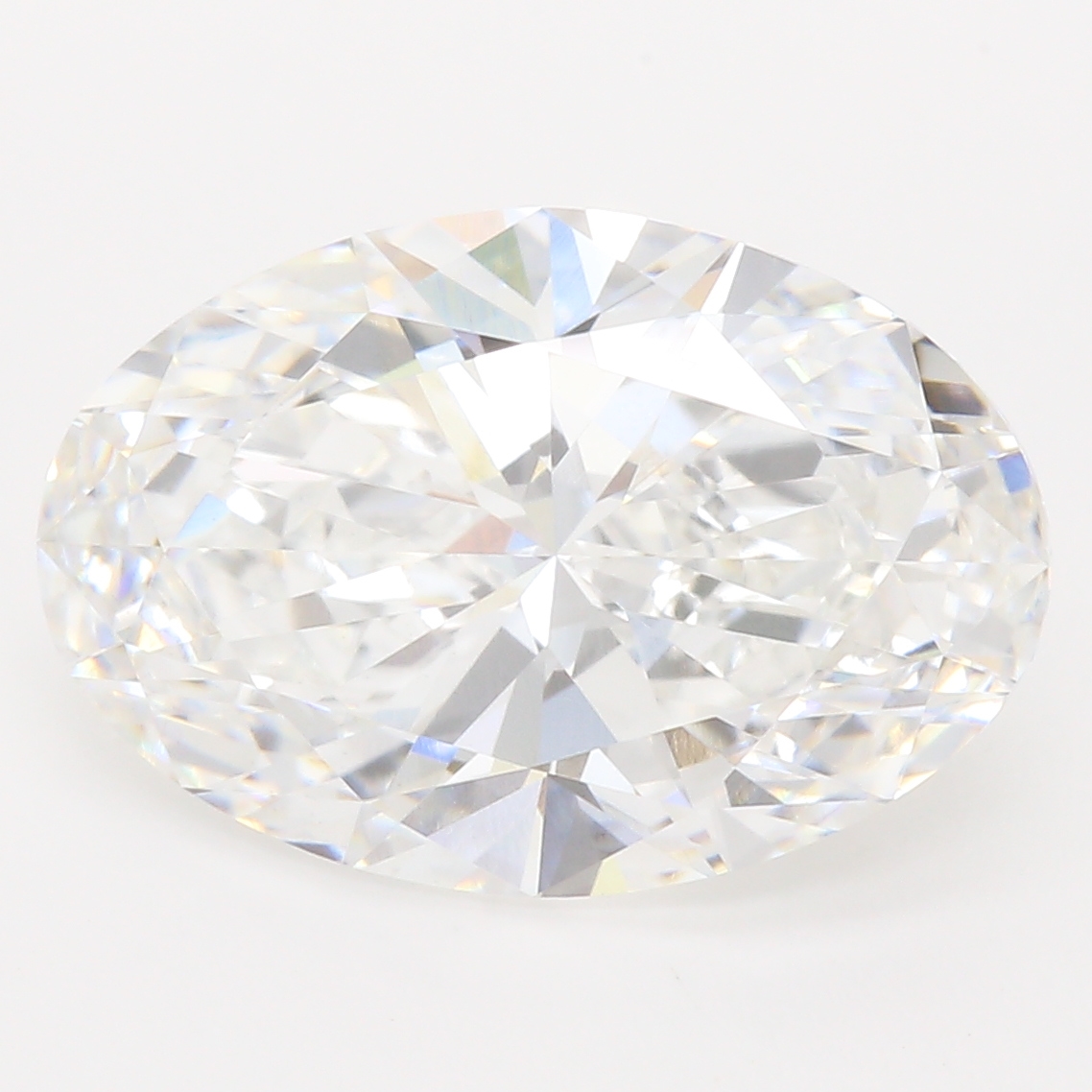 An oval diamond held by pointed prongs is framed by two baguette diamonds in this classic engagement ring.