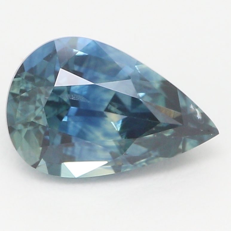 Two tone Ivy leaf split shank ring with a trellis 4-prong set pear shaped center stone. Each shoulder has an 18k yellow gold 5-petal curved ivy leaf and (2) hand fabricated curls & a 3-petal ivy leaf. Each side face panel has a 3-petal ivy leaf.