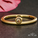 14kt yellow gold asymmetrical stackable ring with .10ct champagne rose cut diamond. Matte finish, size 6.75.