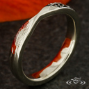 Custom 14kt warm white gold band with a light comfort fit profile that pinches in the center of the top face. Hand engraved oat and barley pattern with the stems wrapping around the top face. All with a high polish finish.