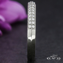 Platinum band with a knife edge comfort fit profile. Total of (34) round cut diamonds bead set in (2) rows along the top third totaling .14ctw