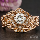 This curved vine and diamond leaf band with sleek lines is the prefect accompaniment to many of our floral and organic rings.