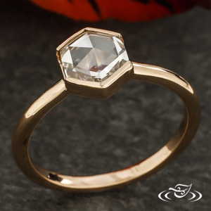 Custom platinum solitaire ring holding a channel set 1.59ct princess cut pink lab grown diamond center stone. This ring has a round shank and a brushed matte finish.