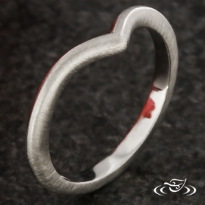 Custom hand carved platinum shadow band with a U-shaped curve at the top. This band has a slightly reversely tapered shank with milgrain around the edges of the top face and the inner side faces.