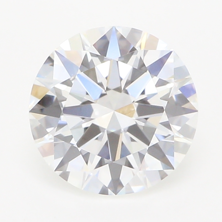 Custom platinum ring holding a prong-set round cut diamond, surrounded by two round blue Montana sapphire side stones. This ring has a reversely tapered round domed shank.