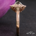 Classic halo with ~20 bead set diamonds, ~ 20ctw with milgrain edges. Pierced open floral detail under halo. Fits Rose cut or Brilliant cut gems. Price may vary for larger center gems, Ask Your Designer for details.