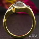 A rustic rose cut oval diamond is held in a wrap setting and accented by two golden curls with rustic diamond accents.