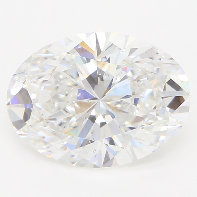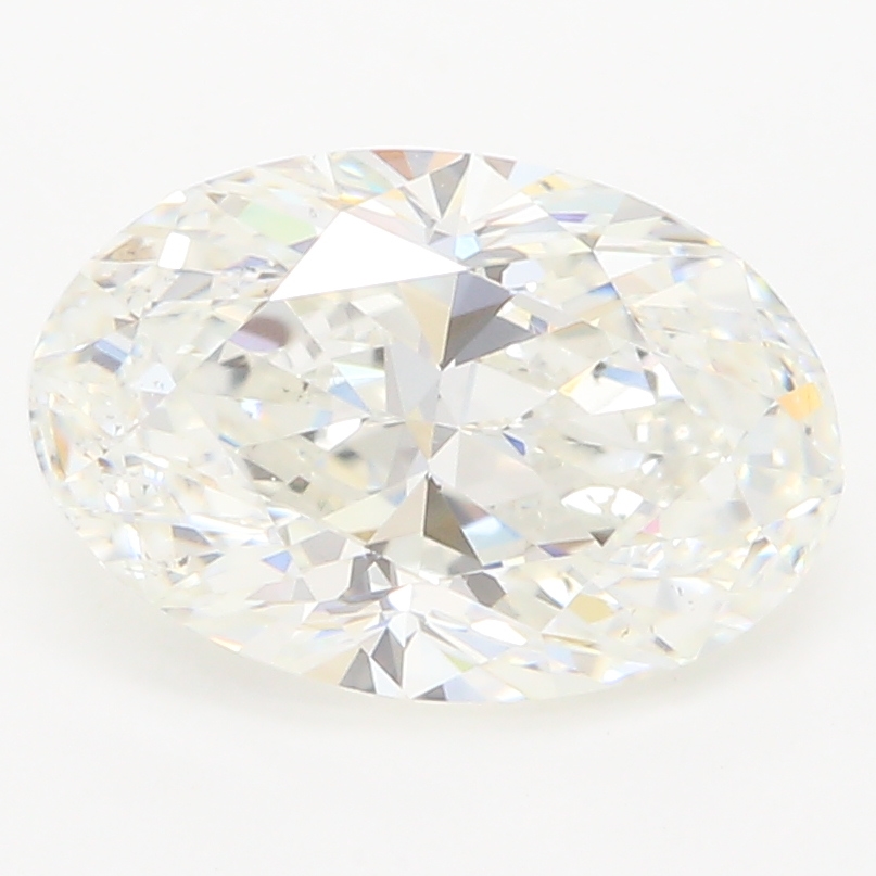 Three stone engagement ring holding a 4-prong set oval cut center stone flanked with (2) round diamond stones followed by a pierced diamond leaf and vine shoulder all framed in milgrain edges.