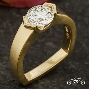 An emerald cut orange sapphire and four baguette diamonds are set amongst a geometric pattern of ancient circuitry. A mix of brushed and polished finishes 'reveals' this relic technology from within the ring.