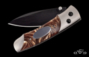 This frame of this knife is aerospace grade titanium and compressed acrylic resin, featuring an inset engraving plate. The blade is stainless steel with a black diamond-like coating. - William Henry