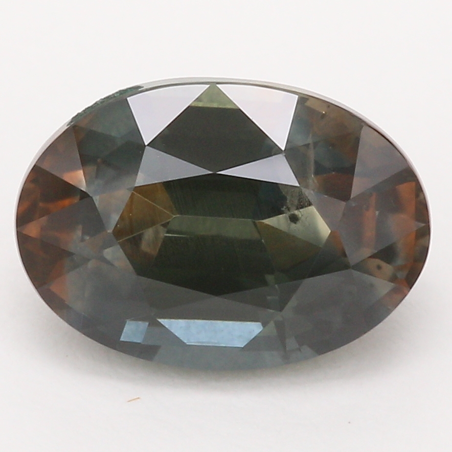 Platinum 3-stone ring featuring prong set 304ct oval teal sapphire with pear lab diamond side stones. High polish finish.