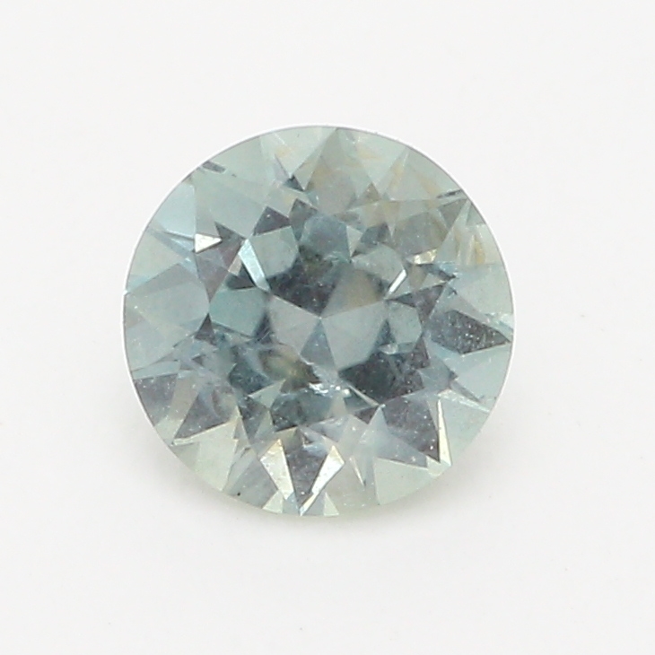 14kt white gold ring holding a half bezel .66ct sapphire round center stone. Hand engraved with a fern design, size 7