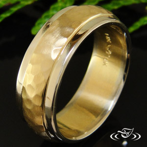 2-Tone Rustic 8mm Band with a matte finished hammer texture on the center section with polished rails